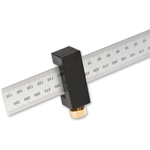 The Rule Stop has an anodised aluminium body with a brass locking screw. The Rule Stop fits onto virtually any standard steel rule between 22mm(7/8") and 30mm(1.1/16") wide. Once fitted to your rule, precision machining ensures the body is always square to your rule’s edge. Effectively, it allows you to use a rule in a similar way as you would use a combination square. You can scribe lines parallel to the edge of timber, or use it as a depth stop, a transfer gauge, a small square and a useful tool for setting sharpening jigs. The Rule Stop is real gem, invaluable for accurate marking out. It is easy to align the edge of the Rule Stop with engraved scale graduations. The brass locking screw won’t damage your rule’s edge. The knurled knob is 15mm diameter making it easy to tighten without it getting in the way of the stop’s functions.